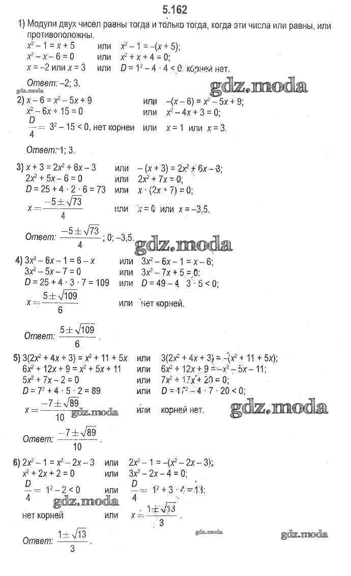 ОТВЕТ на задание № 5.162 Учебник по Алгебре 8 класс Кузнецова