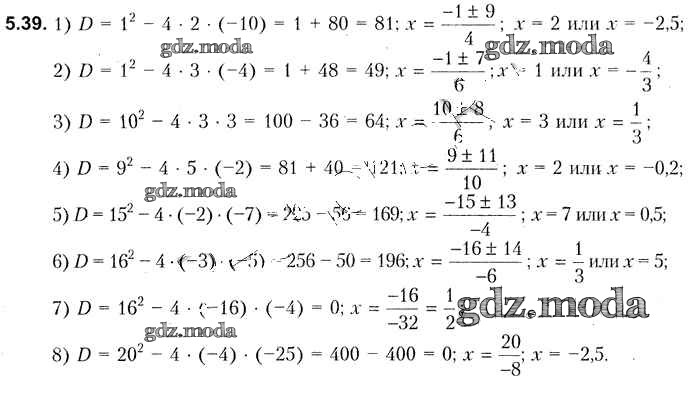 ОТВЕТ на задание № 5.39 Учебник по Алгебре 8 класс Кузнецова