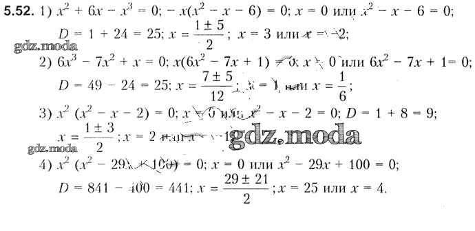 ОТВЕТ на задание № 5.52 Учебник по Алгебре 8 класс Кузнецова