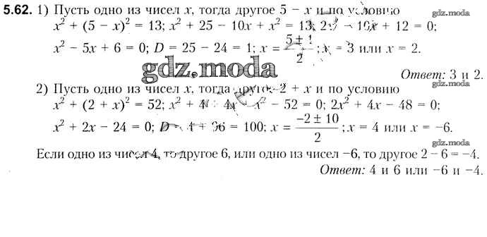 ОТВЕТ на задание № 5.62 Учебник по Алгебре 8 класс Кузнецова