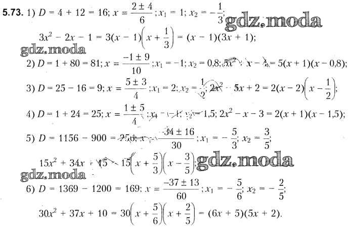 ОТВЕТ на задание № 5.73 Учебник по Алгебре 8 класс Кузнецова