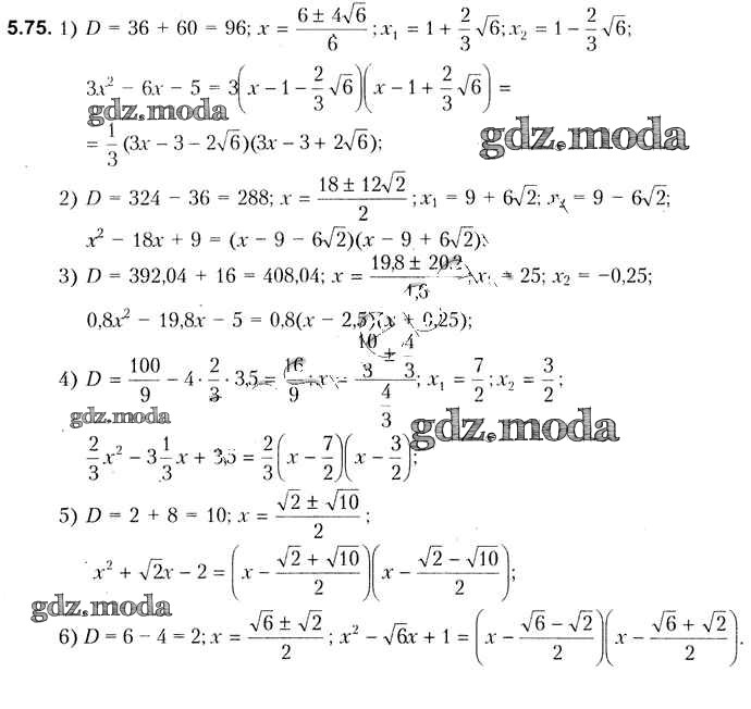 ОТВЕТ на задание № 5.75 Учебник по Алгебре 8 класс Кузнецова