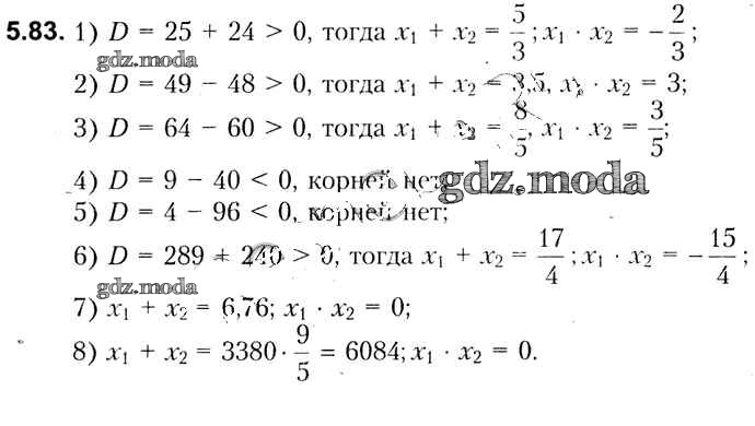 ОТВЕТ на задание № 5.83 Учебник по Алгебре 8 класс Кузнецова