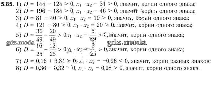 ОТВЕТ на задание № 5.85 Учебник по Алгебре 8 класс Кузнецова