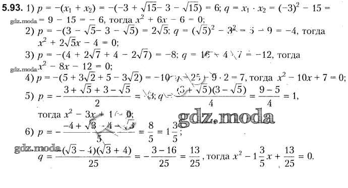 ОТВЕТ на задание № 5.93 Учебник по Алгебре 8 класс Кузнецова