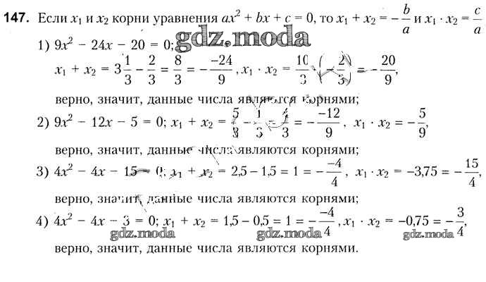 ОТВЕТ на задание № 147 Учебник по Алгебре 8 класс Кузнецова