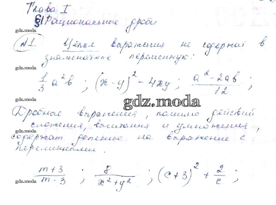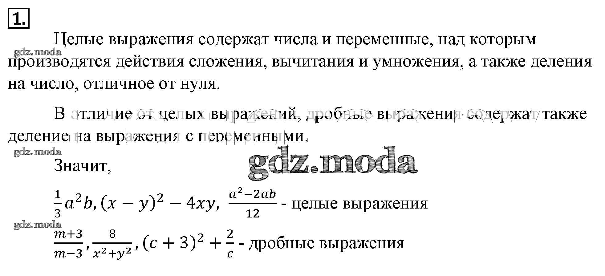 ОТВЕТ на задание № 1 Учебник по Алгебре 8 класс Макарычев
