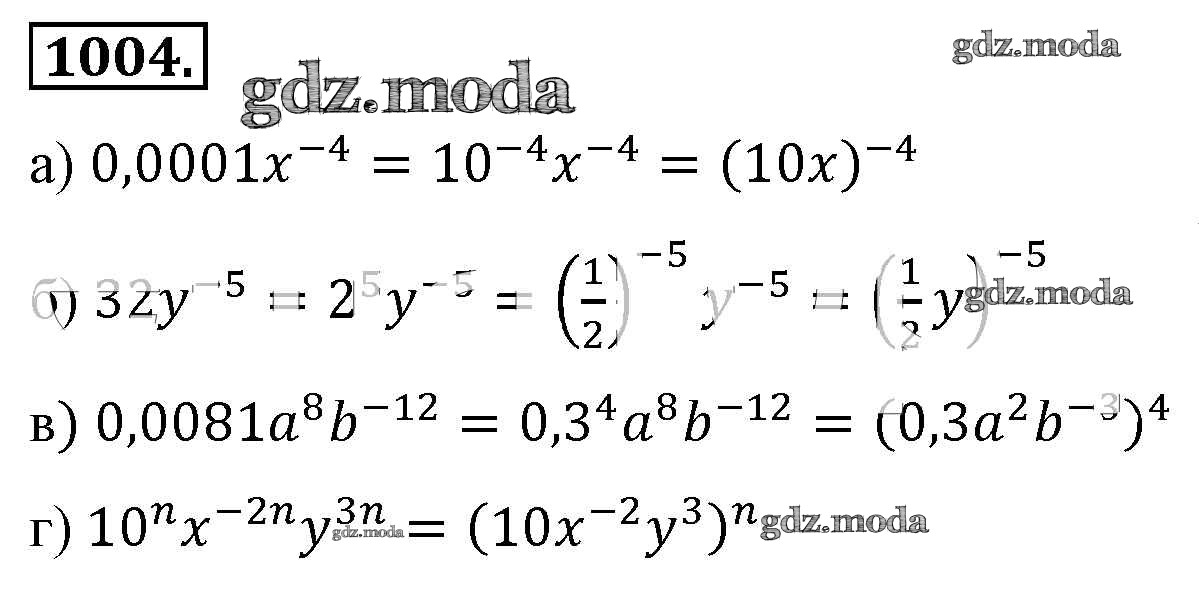 ОТВЕТ на задание № 1004 Учебник по Алгебре 8 класс Макарычев