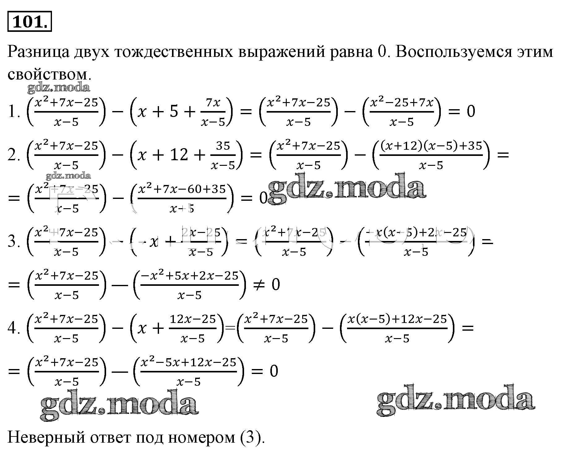 ОТВЕТ на задание № 101 Учебник по Алгебре 8 класс Макарычев