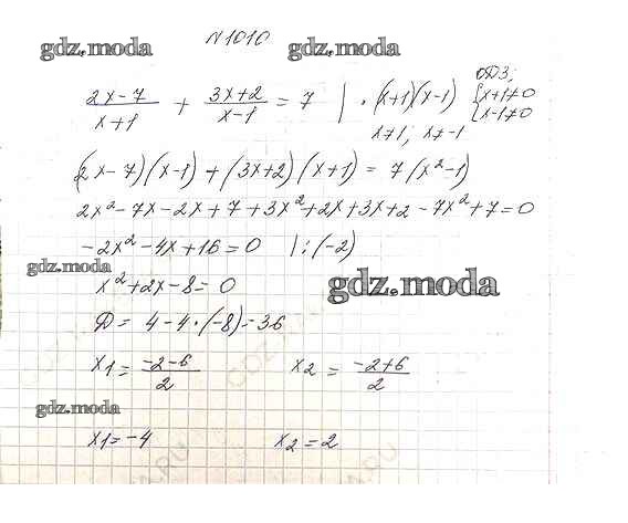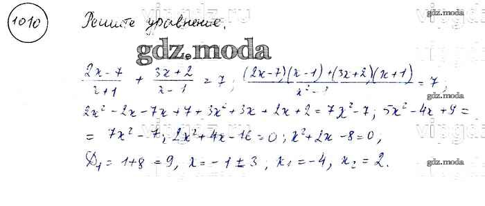 ОТВЕТ на задание № 1010 Учебник по Алгебре 8 класс Макарычев