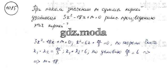 ОТВЕТ на задание № 1025 Учебник по Алгебре 8 класс Макарычев