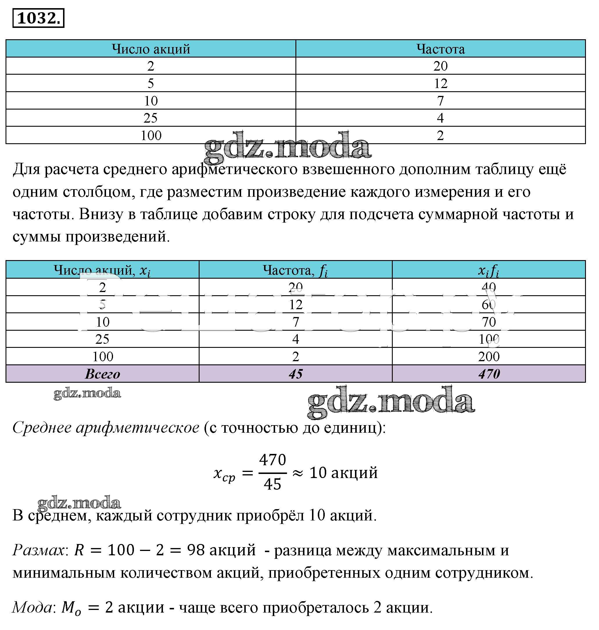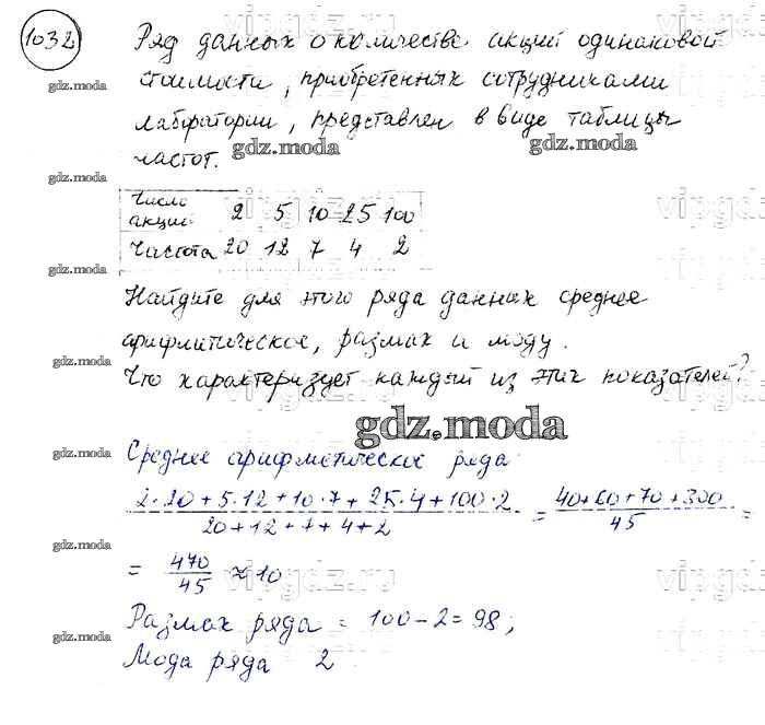 ОТВЕТ на задание № 1032 Учебник по Алгебре 8 класс Макарычев