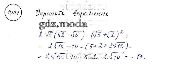 ОТВЕТ на задание № 1041 Учебник по Алгебре 8 класс Макарычев
