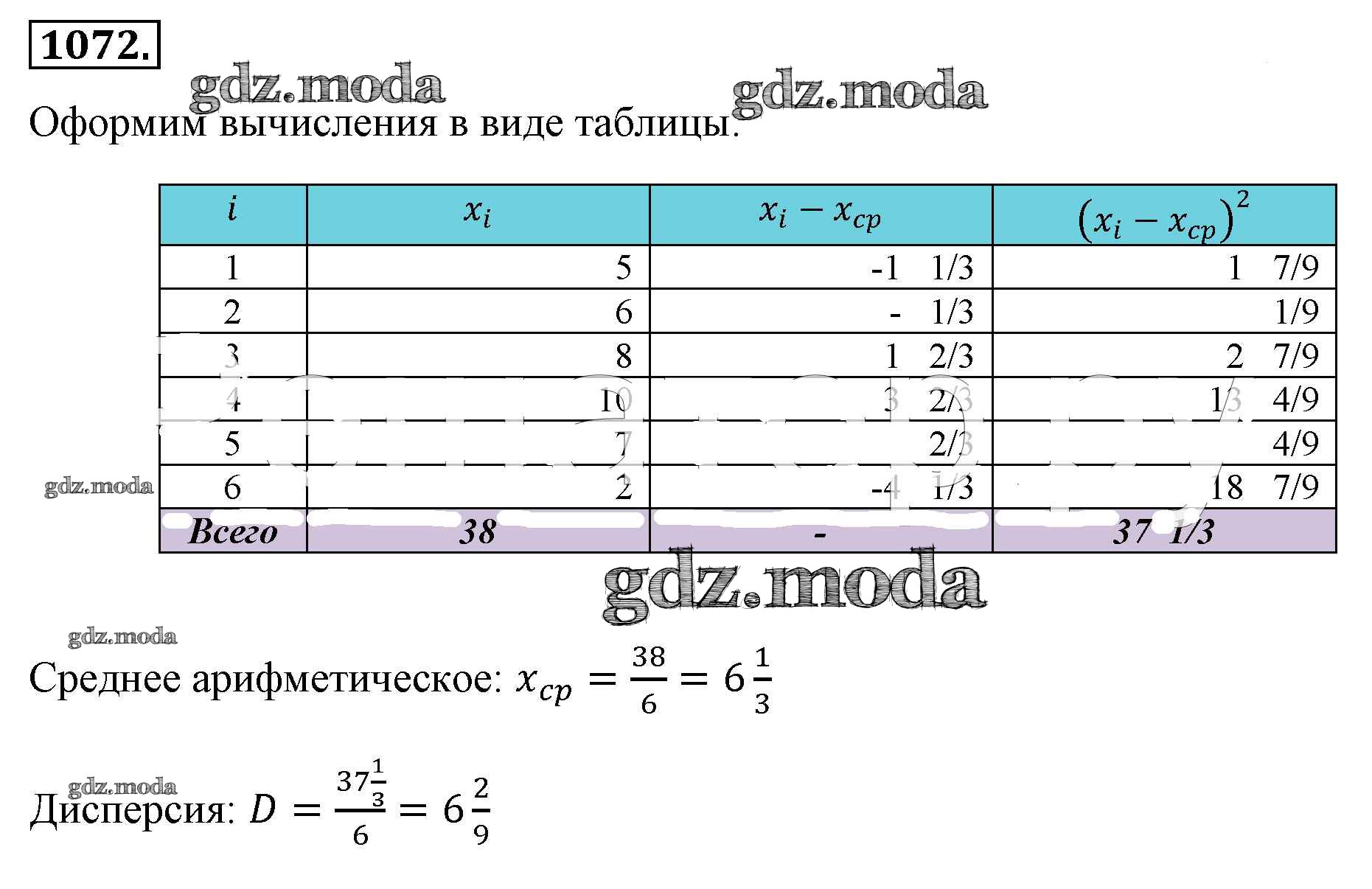 ОТВЕТ на задание № 1072 Учебник по Алгебре 8 класс Макарычев