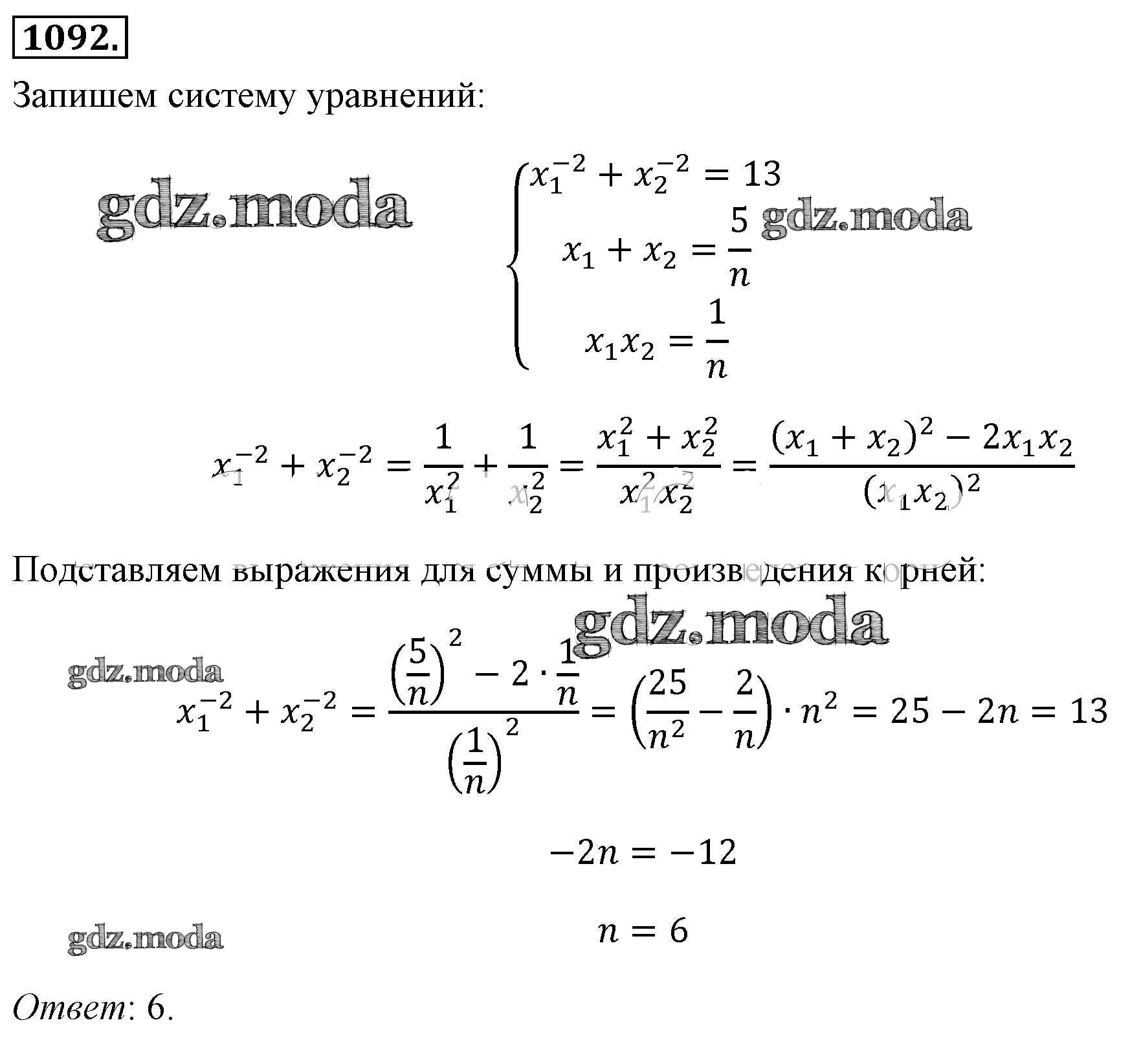 ОТВЕТ на задание № 1092 Учебник по Алгебре 8 класс Макарычев