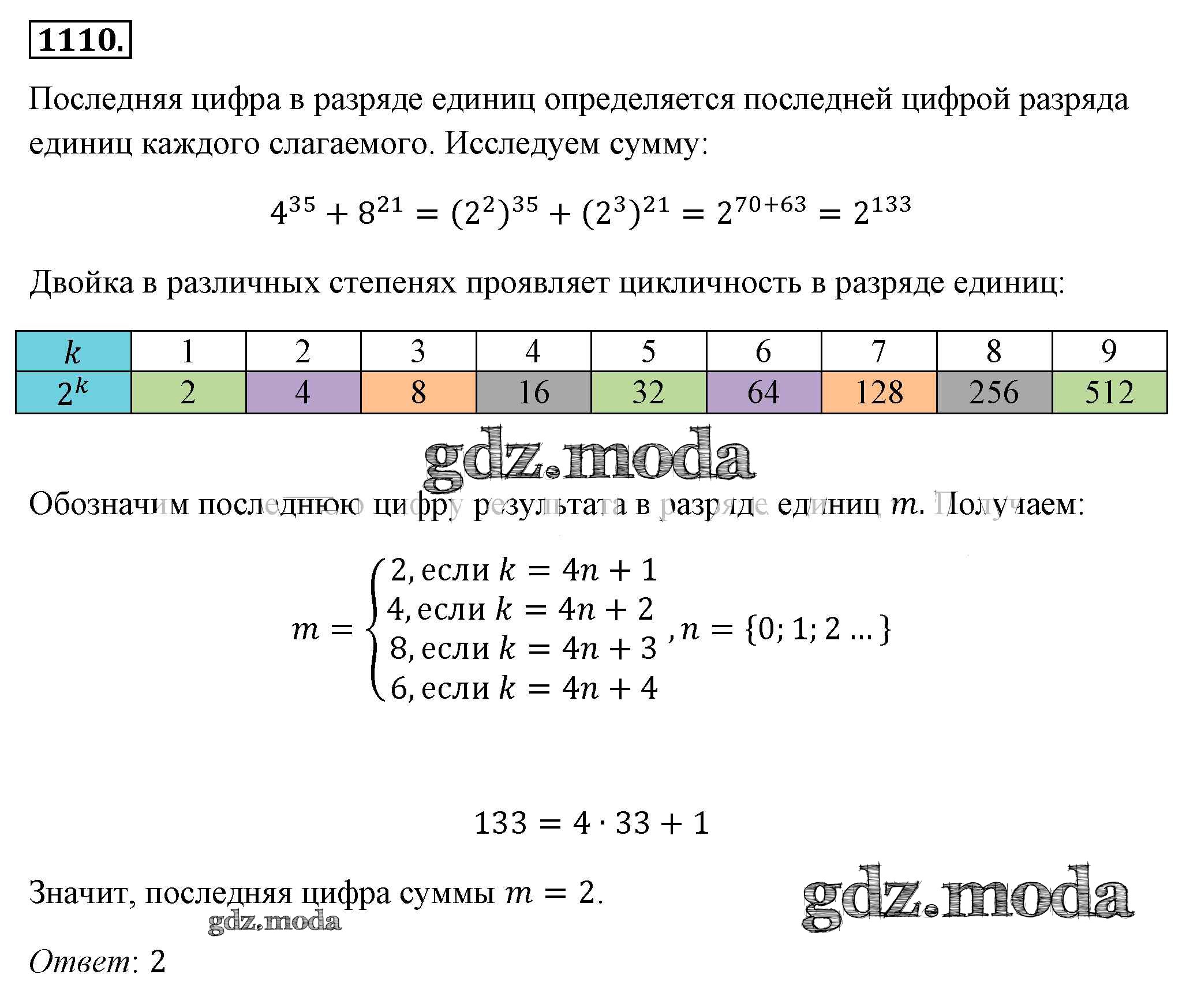 ОТВЕТ на задание № 1110 Учебник по Алгебре 8 класс Макарычев