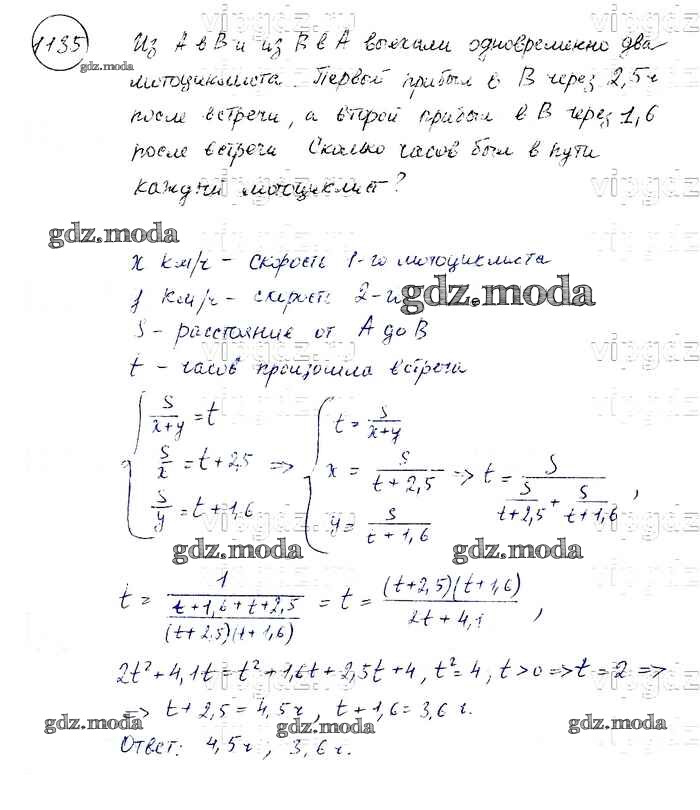 ОТВЕТ на задание № 1135 Учебник по Алгебре 8 класс Макарычев