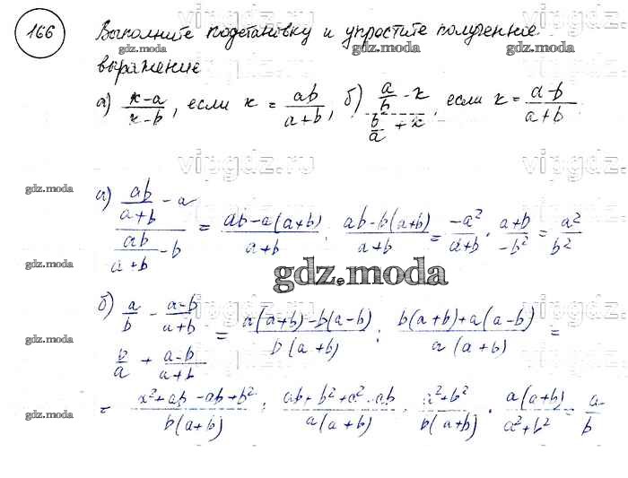 ОТВЕТ на задание № 166 Учебник по Алгебре 8 класс Макарычев