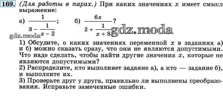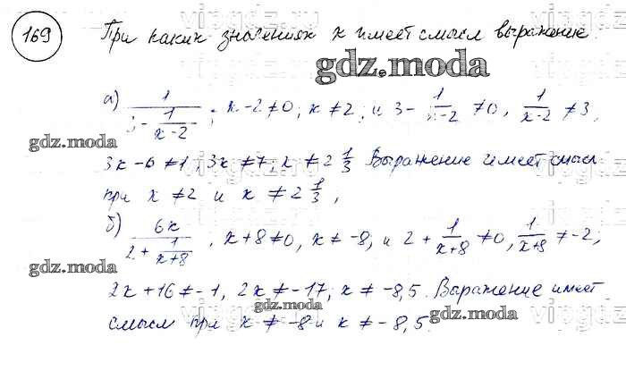 ОТВЕТ на задание № 169 Учебник по Алгебре 8 класс Макарычев