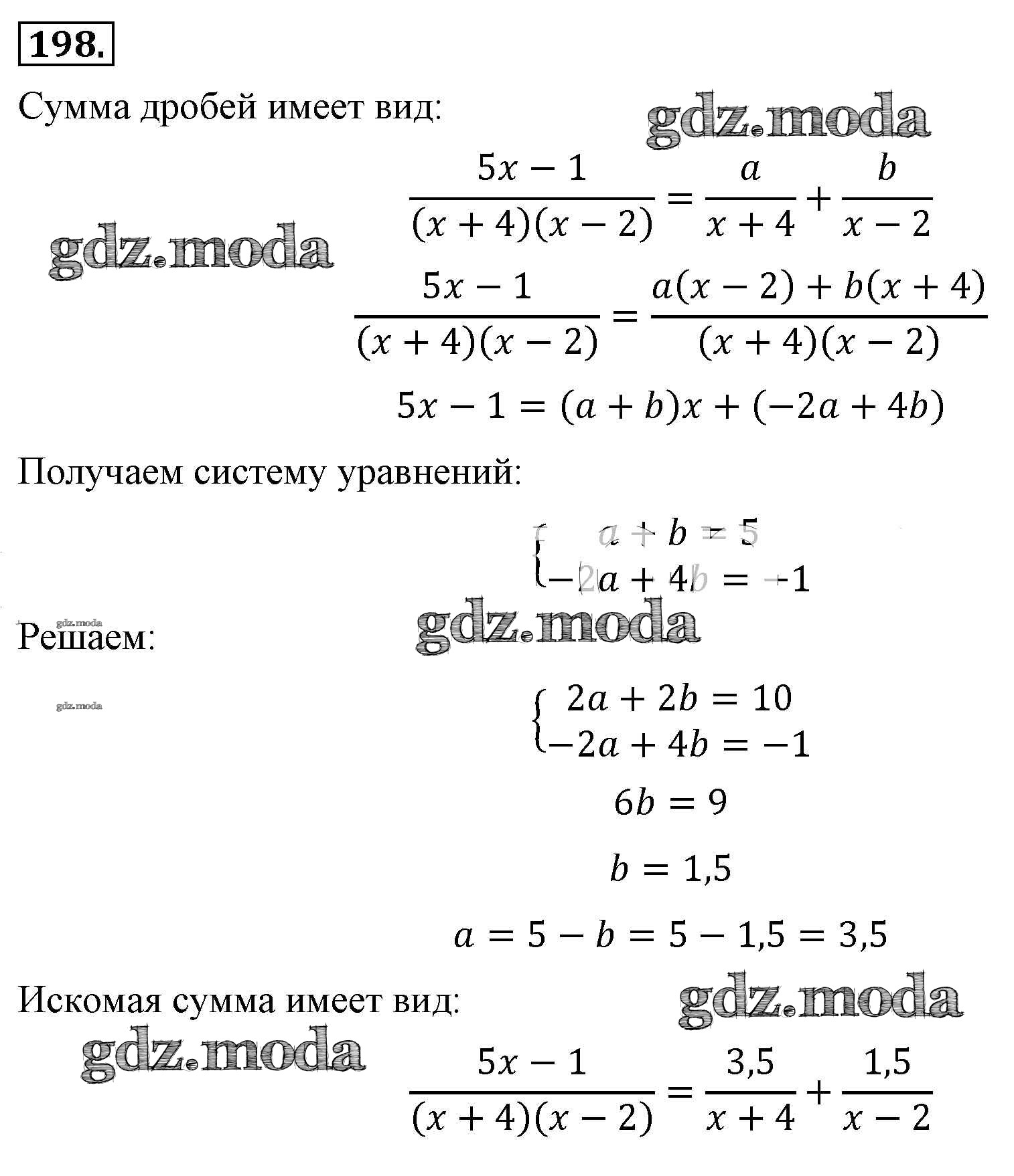 ОТВЕТ на задание № 198 Учебник по Алгебре 8 класс Макарычев