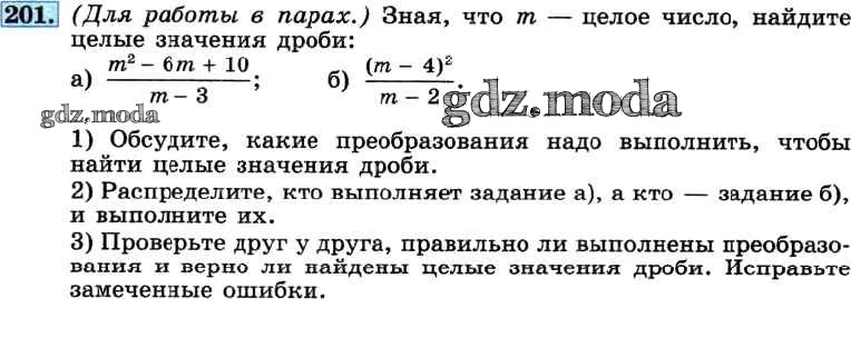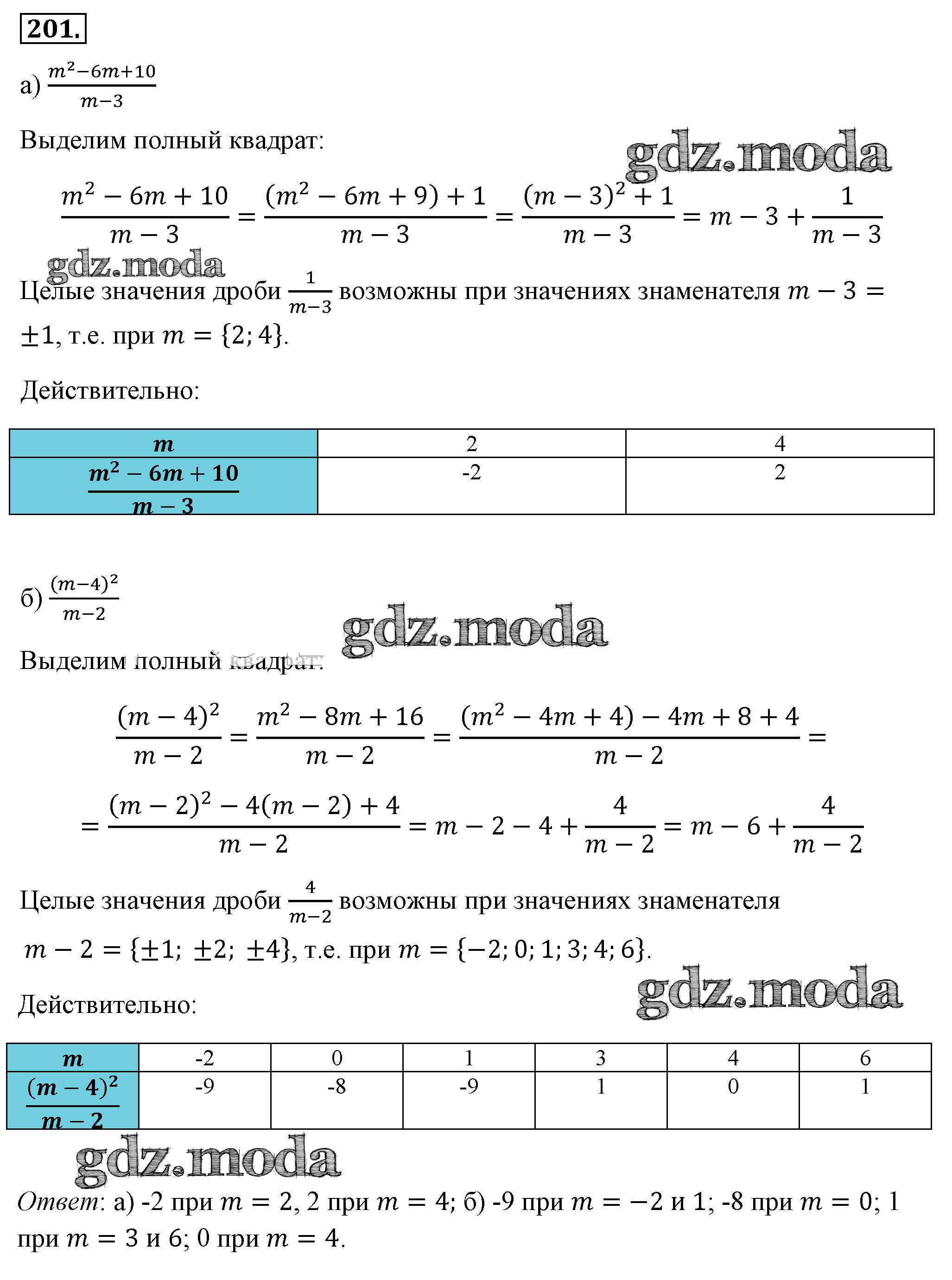 ОТВЕТ на задание № 201 Учебник по Алгебре 8 класс Макарычев