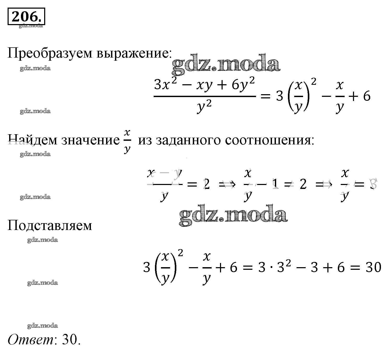 ОТВЕТ на задание № 206 Учебник по Алгебре 8 класс Макарычев