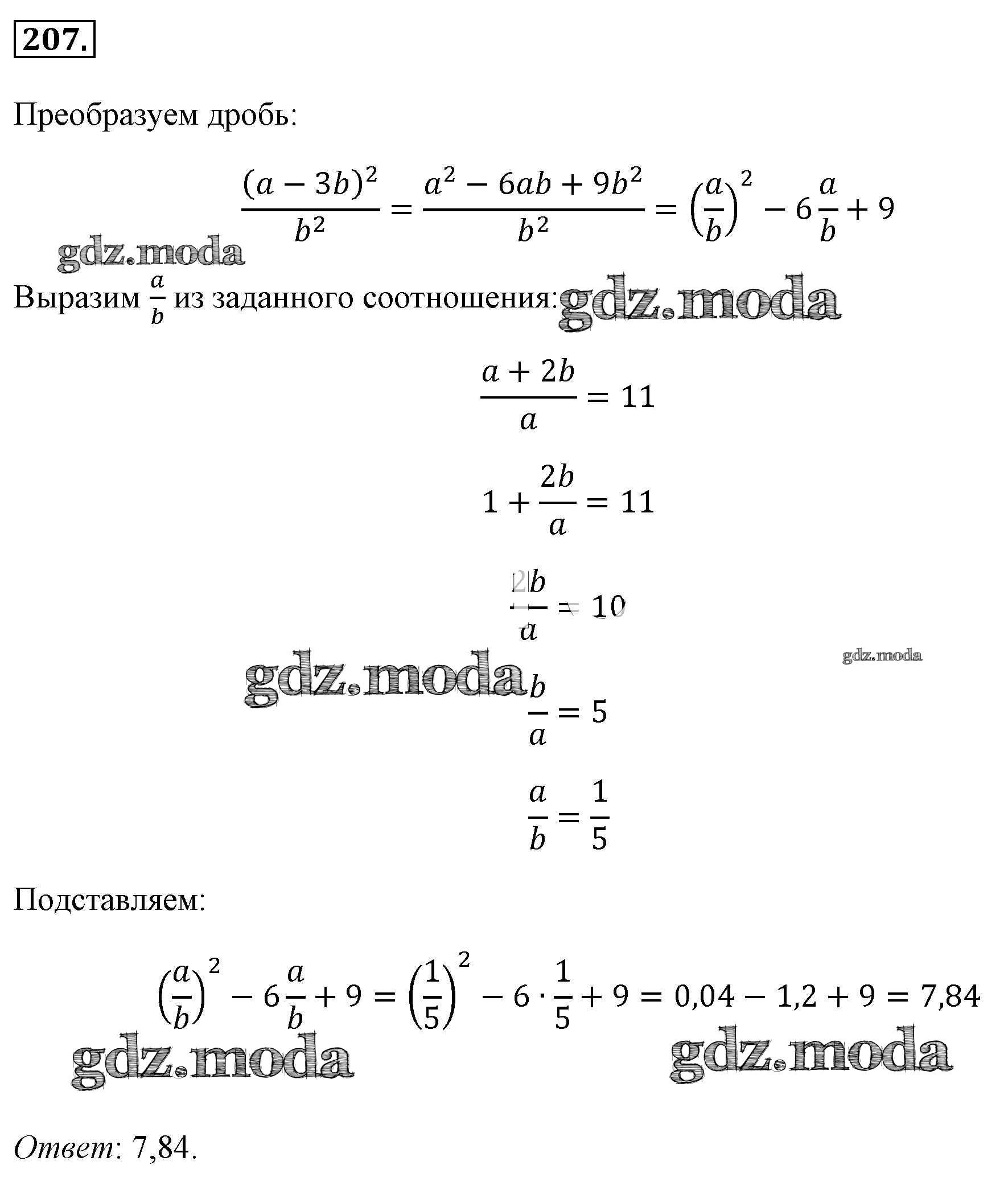 ОТВЕТ на задание № 207 Учебник по Алгебре 8 класс Макарычев