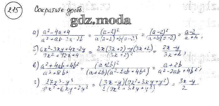 ОТВЕТ на задание № 215 Учебник по Алгебре 8 класс Макарычев
