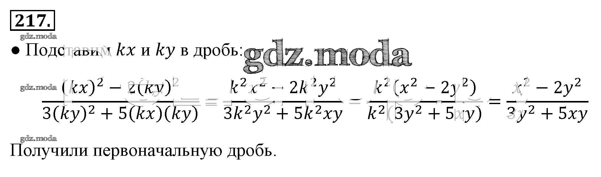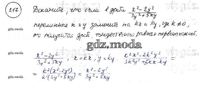 ОТВЕТ на задание № 217 Учебник по Алгебре 8 класс Макарычев