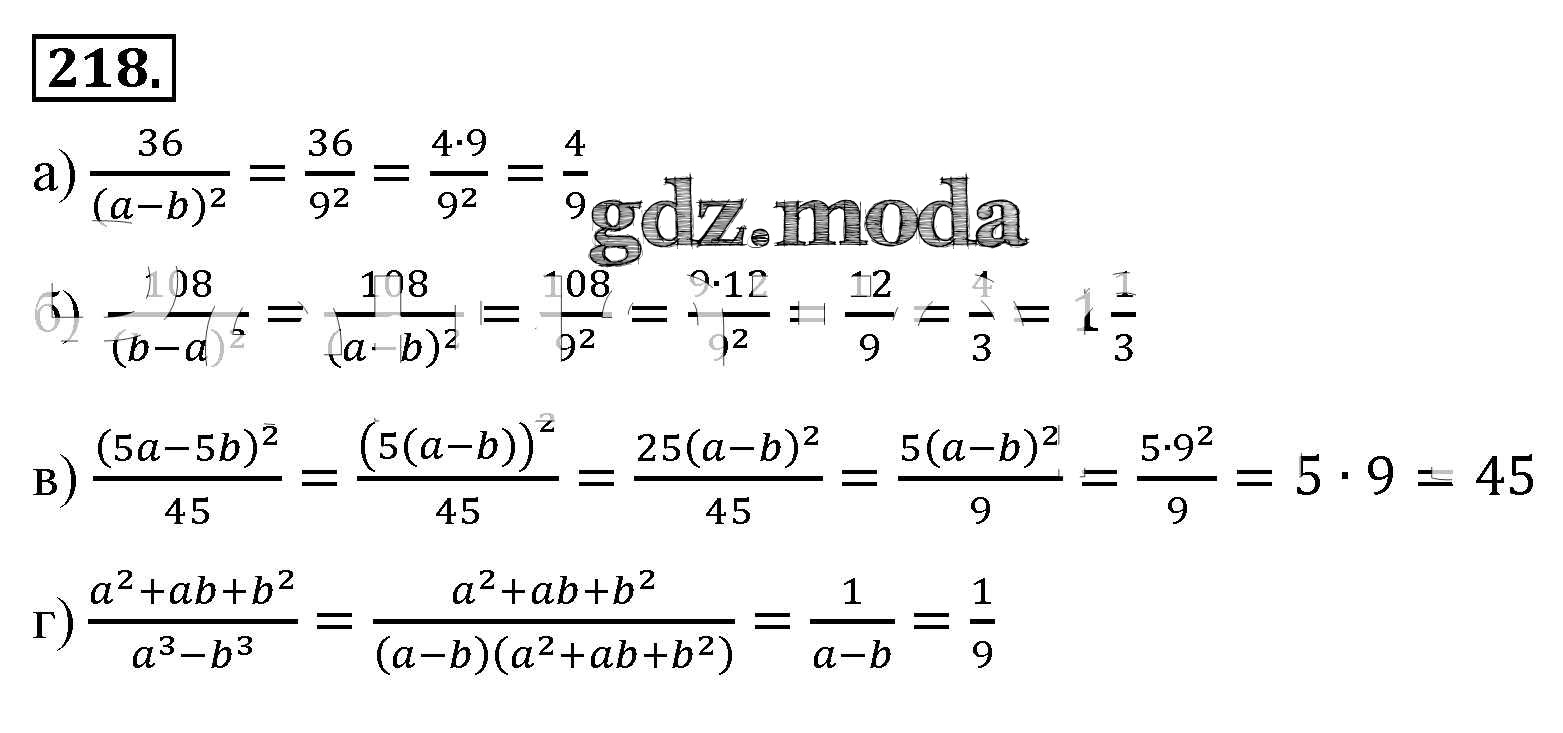 ОТВЕТ на задание № 218 Учебник по Алгебре 8 класс Макарычев