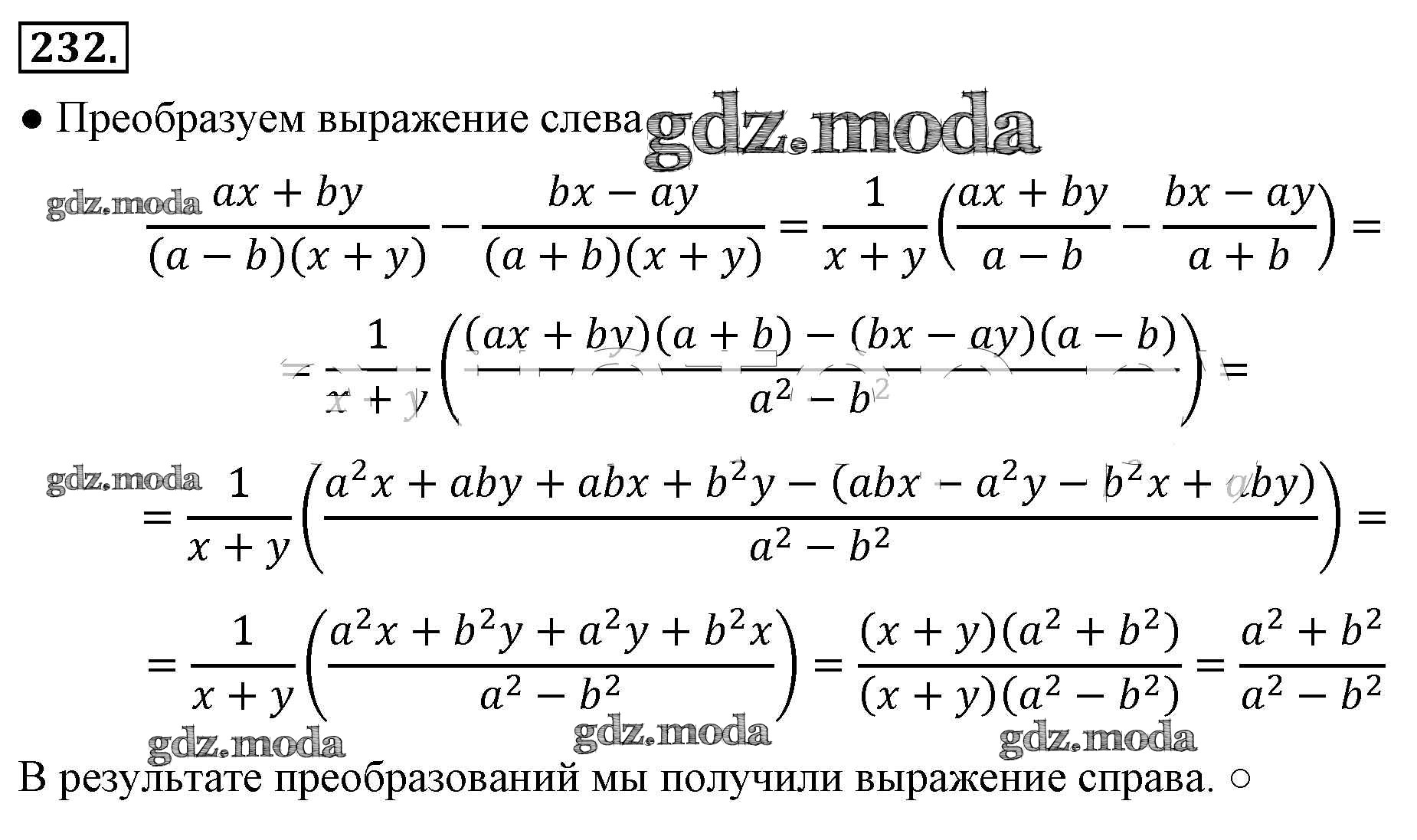 ОТВЕТ на задание № 232 Учебник по Алгебре 8 класс Макарычев