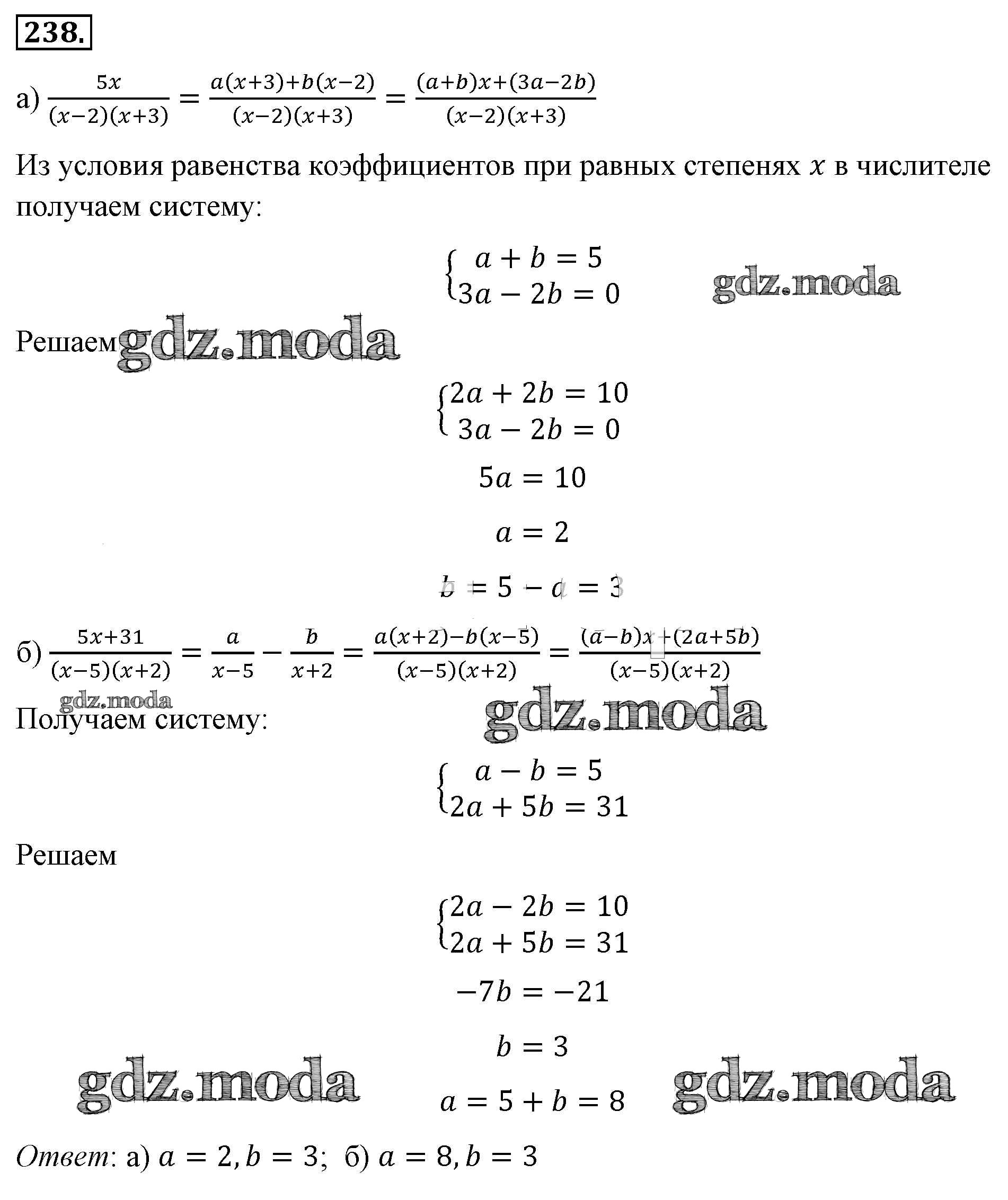 ОТВЕТ на задание № 238 Учебник по Алгебре 8 класс Макарычев