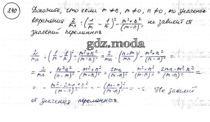 ОТВЕТ на задание № 240 Учебник по Алгебре 8 класс Макарычев