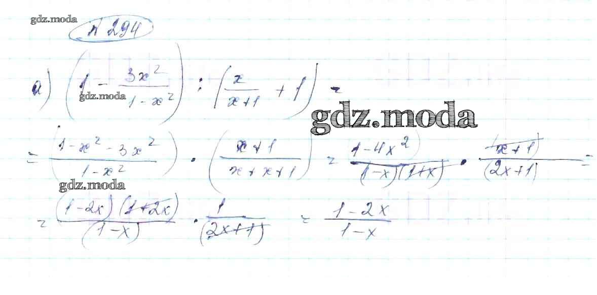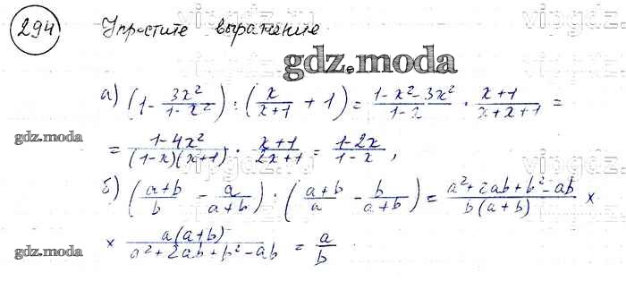ОТВЕТ на задание № 294 Учебник по Алгебре 8 класс Макарычев