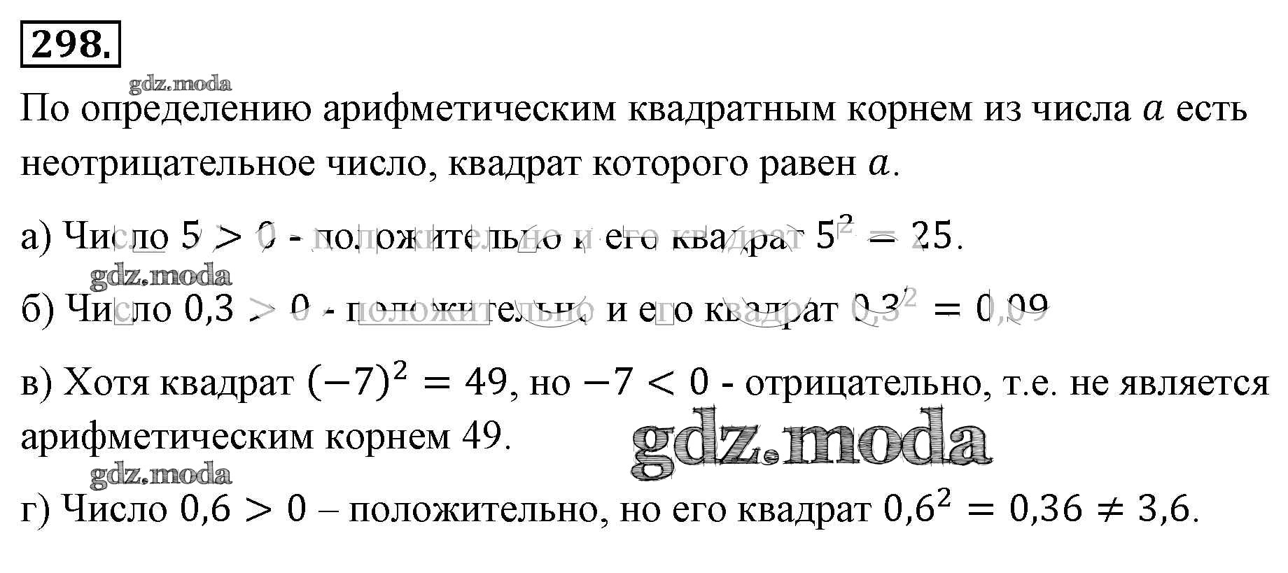 ОТВЕТ на задание № 298 Учебник по Алгебре 8 класс Макарычев