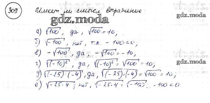 ОТВЕТ на задание № 309 Учебник по Алгебре 8 класс Макарычев