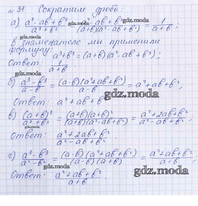 ОТВЕТ на задание № 31 Учебник по Алгебре 8 класс Макарычев