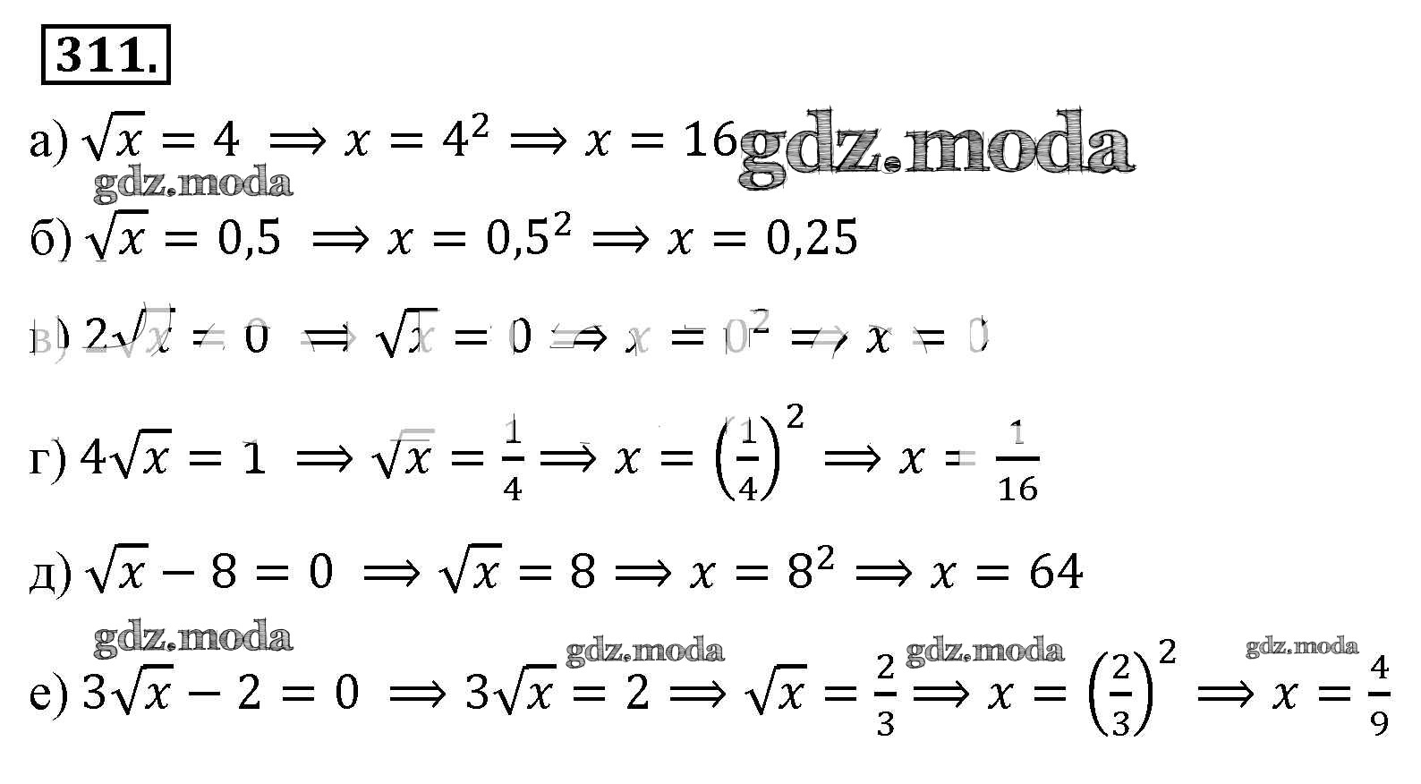 ОТВЕТ на задание № 311 Учебник по Алгебре 8 класс Макарычев