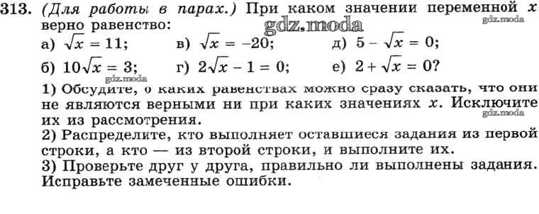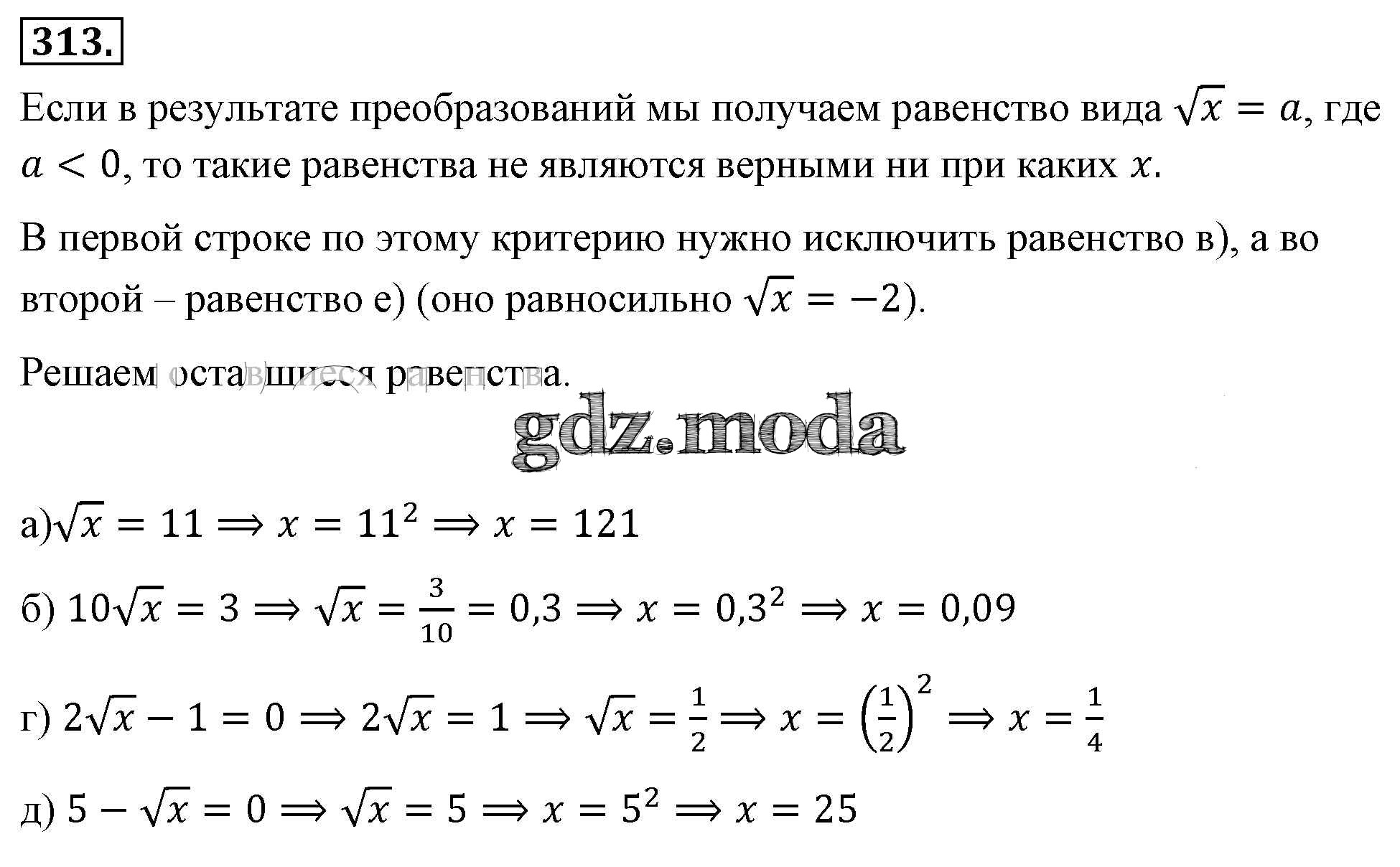 ОТВЕТ на задание № 313 Учебник по Алгебре 8 класс Макарычев