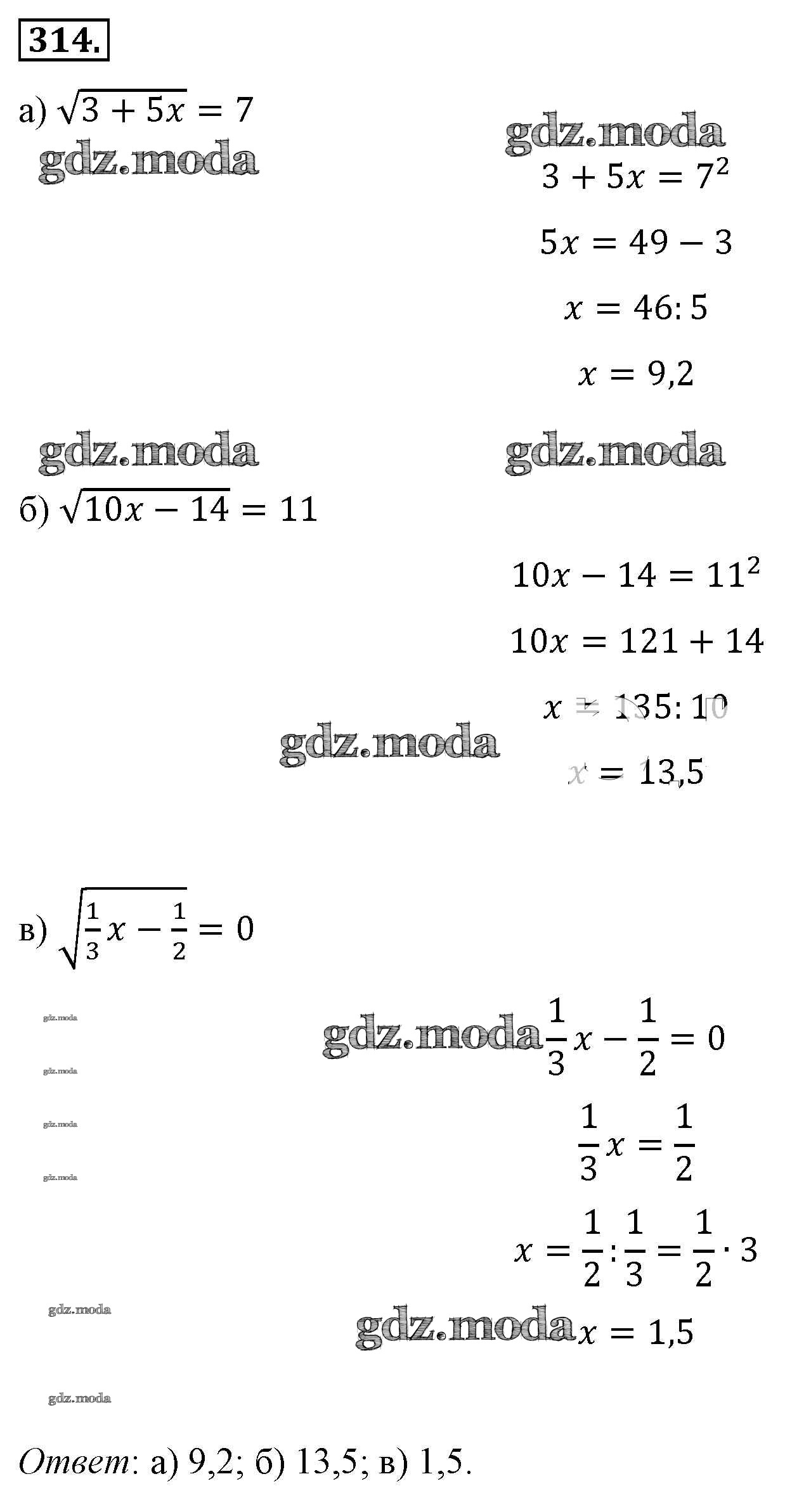 ОТВЕТ на задание № 314 Учебник по Алгебре 8 класс Макарычев