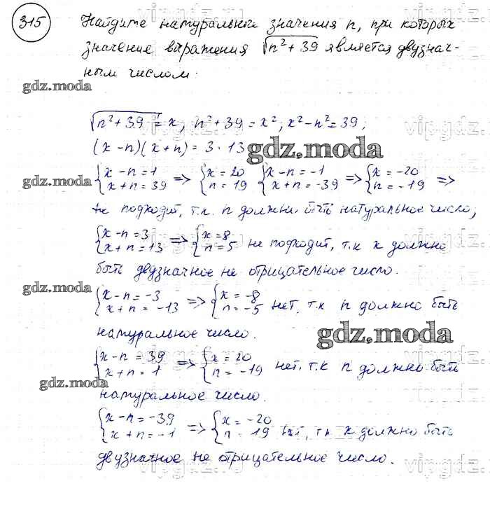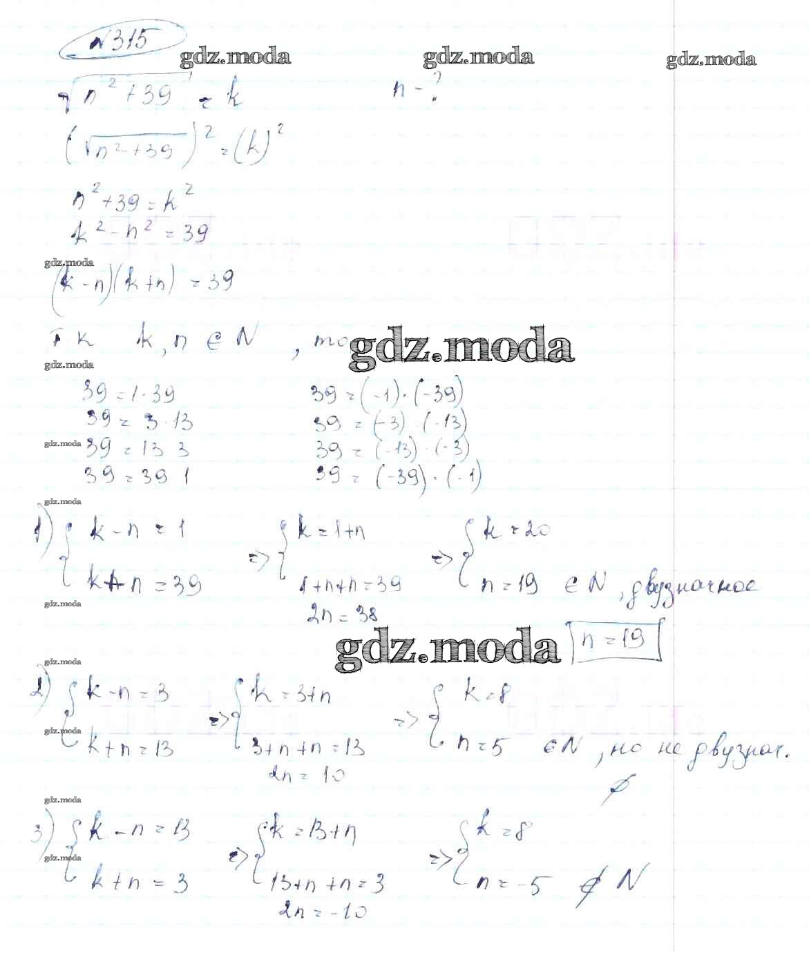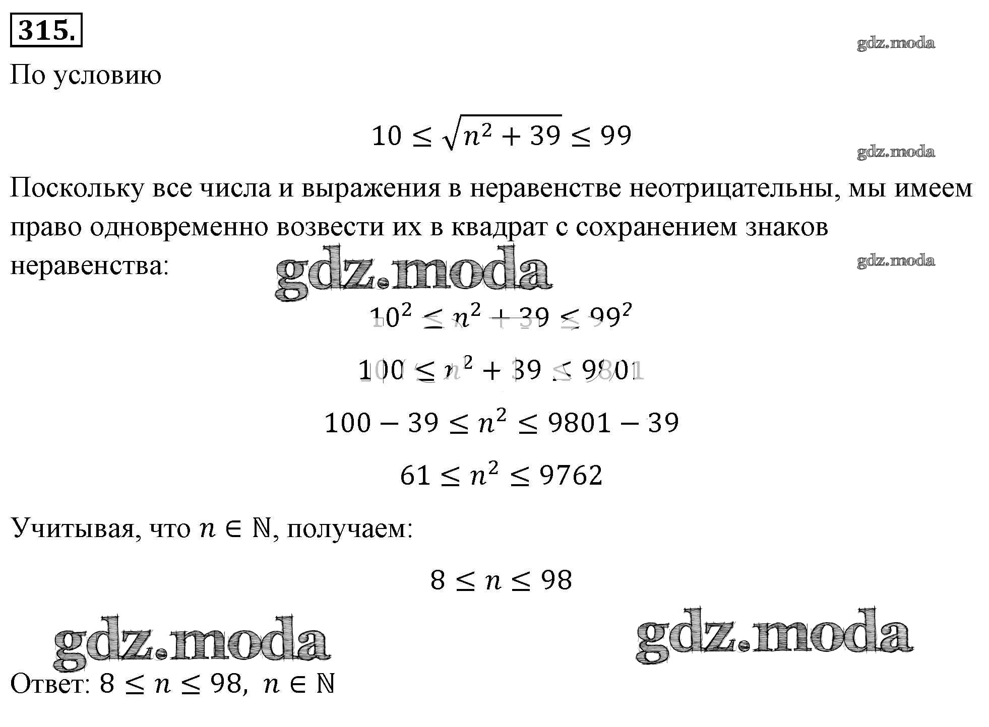 ОТВЕТ на задание № 315 Учебник по Алгебре 8 класс Макарычев