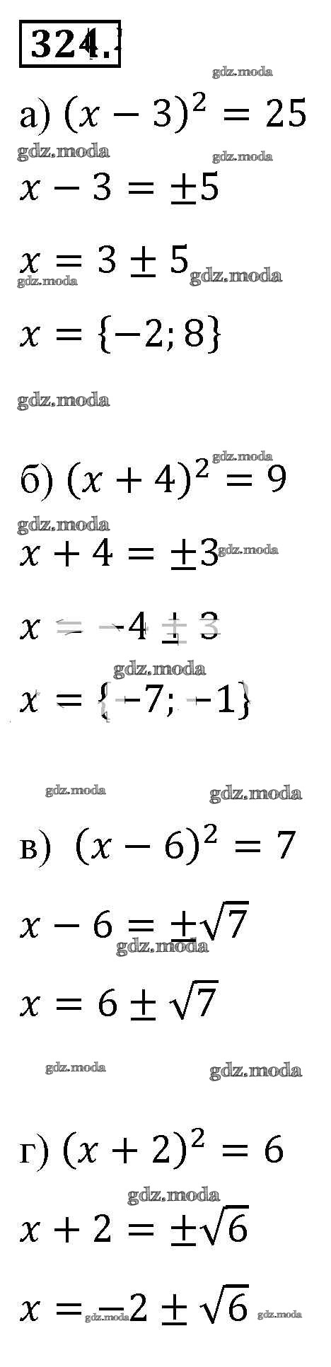 ОТВЕТ на задание № 324 Учебник по Алгебре 8 класс Макарычев
