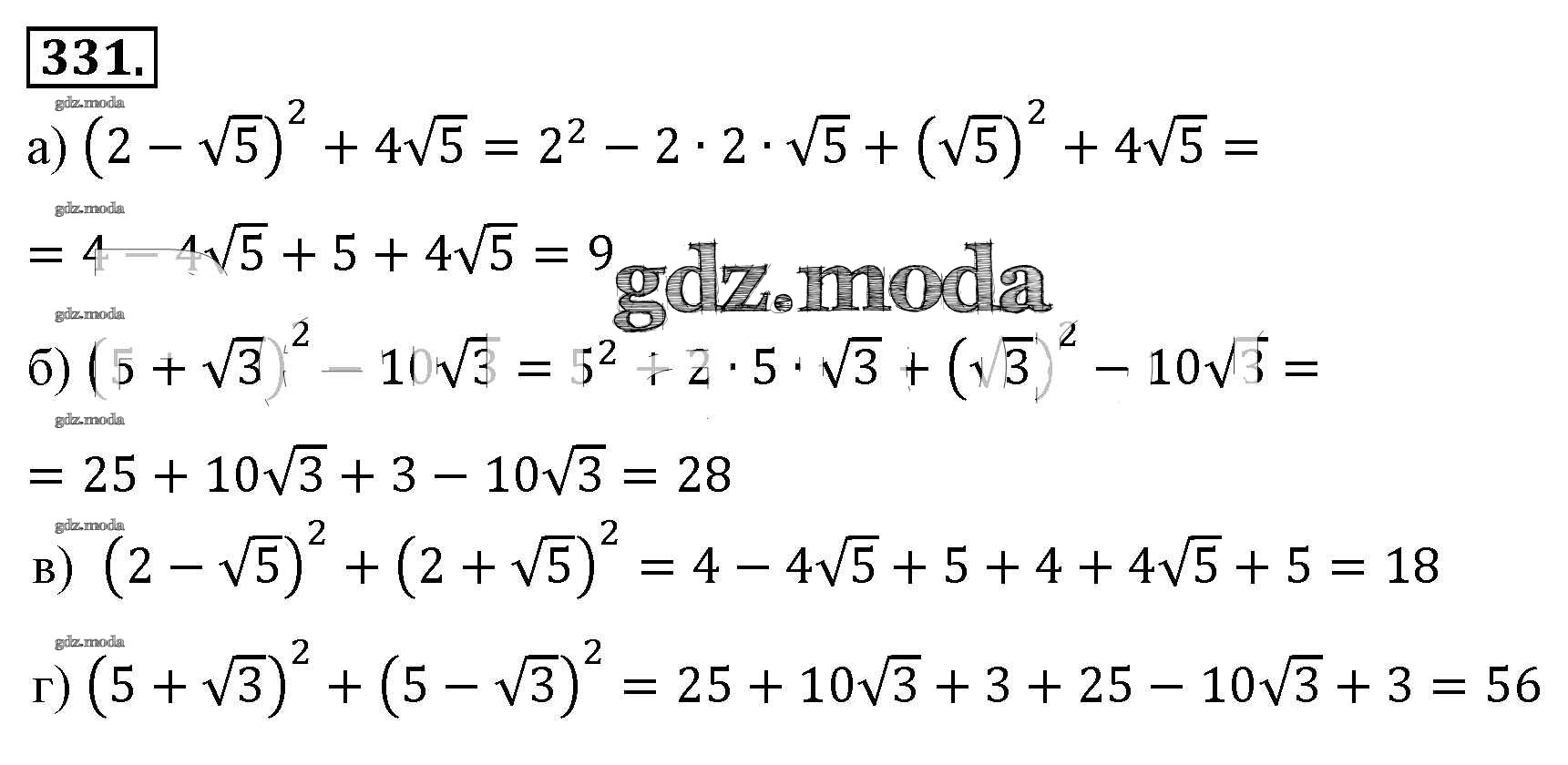 ОТВЕТ на задание № 331 Учебник по Алгебре 8 класс Макарычев