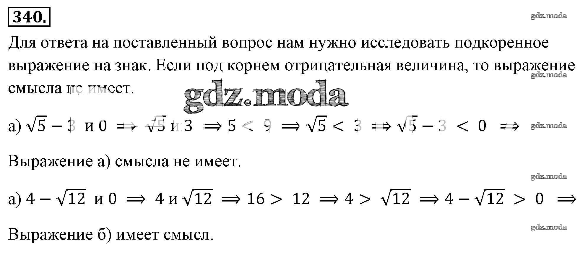 ОТВЕТ на задание № 340 Учебник по Алгебре 8 класс Макарычев