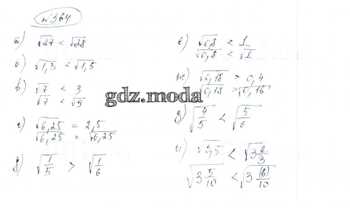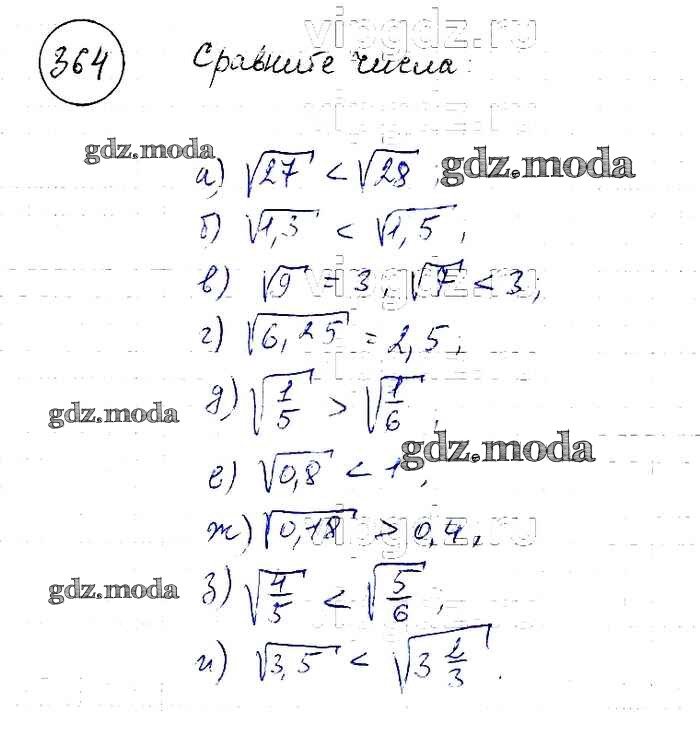 ОТВЕТ на задание № 364 Учебник по Алгебре 8 класс Макарычев
