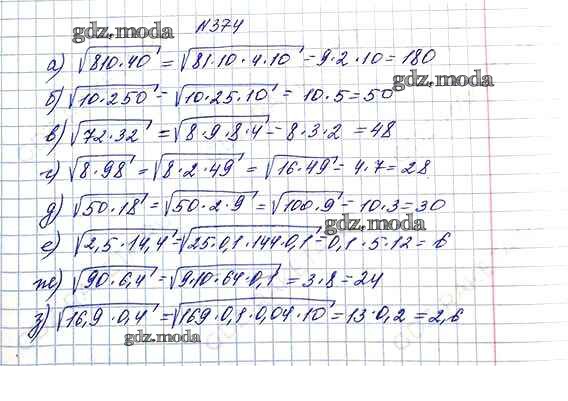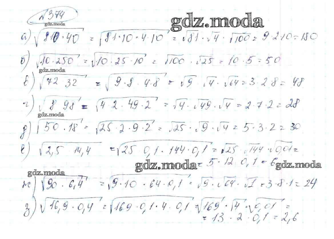 ОТВЕТ на задание № 374 Учебник по Алгебре 8 класс Макарычев