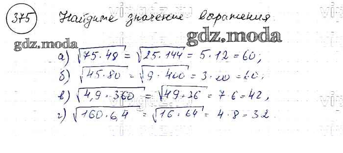ОТВЕТ на задание № 375 Учебник по Алгебре 8 класс Макарычев