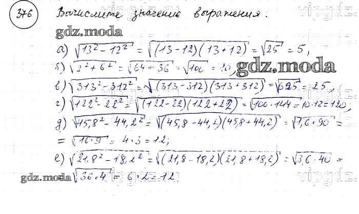 ОТВЕТ на задание № 376 Учебник по Алгебре 8 класс Макарычев