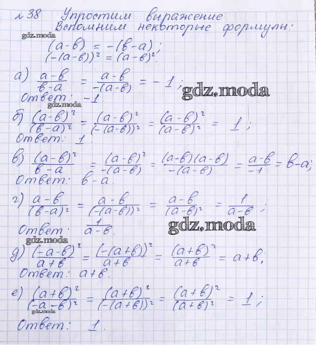 ОТВЕТ на задание № 38 Учебник по Алгебре 8 класс Макарычев