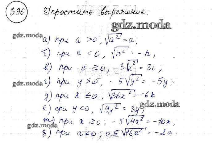ОТВЕТ на задание № 396 Учебник по Алгебре 8 класс Макарычев